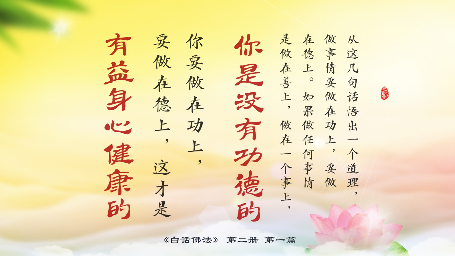 不限会员 2-1-18从这几句话悟出一个道理,做事情要做在功上,要做在德上。如果做任何事情是做在善上,做在一个事上,你是没有功德的;你要做在功上,要做在德上,这才是有益身心健康的。.【图】