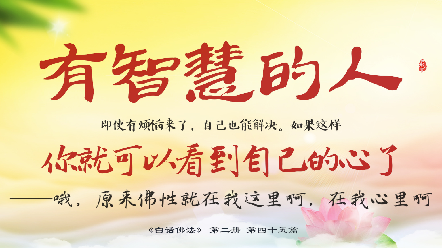不限会员 2-45-39 有智慧的人,即使有烦恼来了,自己也能解决。如果这样,你就可以看到自己的心了——哦,原来佛性就在我这里啊,在我心里啊。.【图】