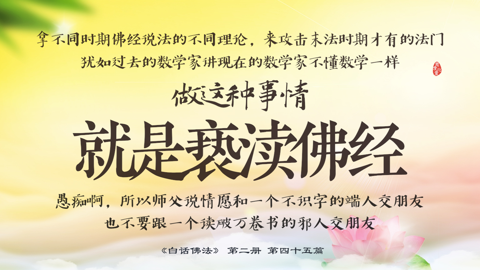 不限会员 2-45-43 拿不同时期佛经说法的不同理论,来攻击末法时期才有的法门...做这种事情就是亵渎佛经,愚痴啊,所以师父说情愿和一个不识字的端人交朋友,也不要跟一个读破万卷书的邪人交朋友.【图】