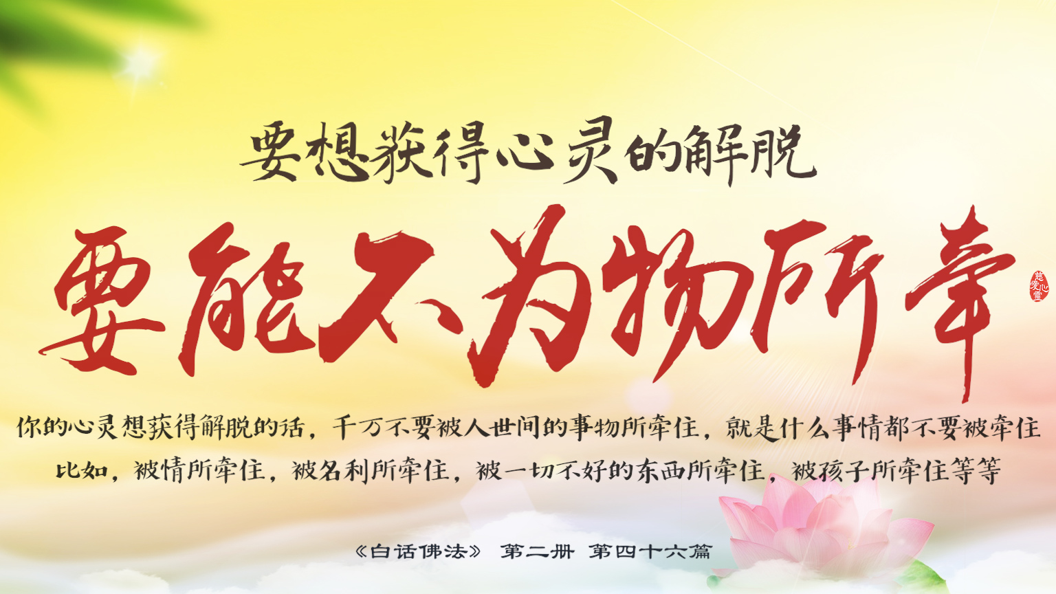 不限会员 2-46-14要想获得心灵的解脱,要能不为物所牵,你的心灵想获得解脱的话千万不要被人世间的事物所牵住...比如,被情被名利所牵住,被一切不好的东西所牵住,被孩子所牵住等等。.【图】