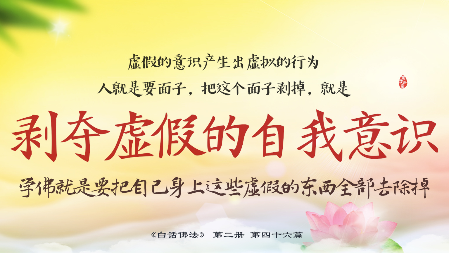 不限会员 2-46-20 虚假的意识产生出虚拟的行为,人就是要面子,把这个面子剥掉,就是剥夺虚假的自我意识。学佛就是要把自己身上这些虚假的东西全部去除掉。.【图】
