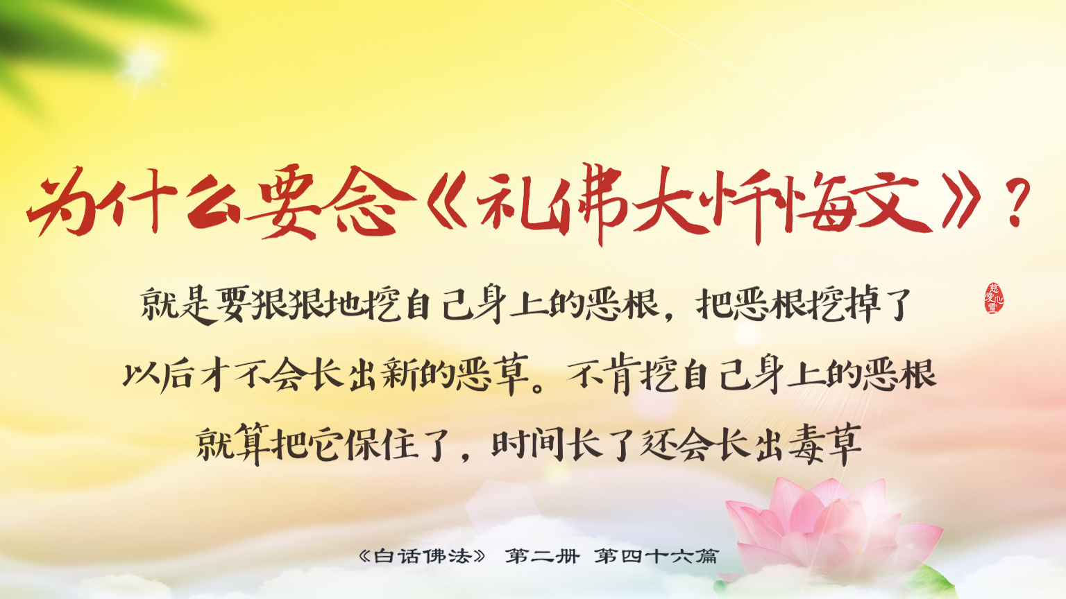 不限会员 2-46-21 为什么要念《礼佛大忏悔文》?就是要狠狠地挖自己身上的恶根,把恶根挖掉了,以后才不会长出新的恶草。不肯挖自己身上的恶根,就算把它保住了,时间长了还会长出毒草。.【图】