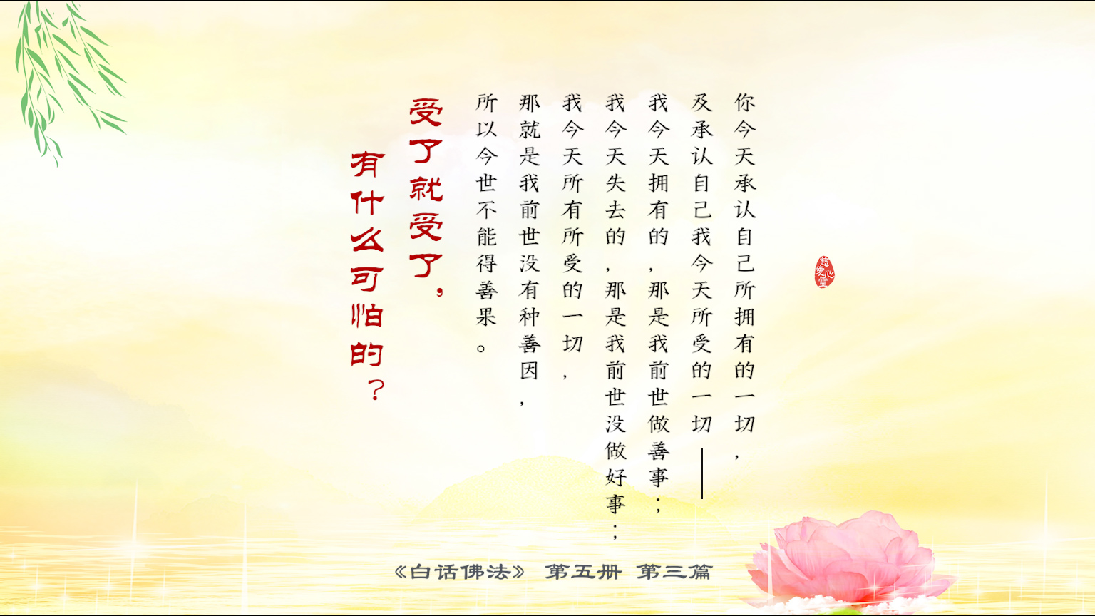 不限会员 5-3-9我今天拥有的,那是我前世做善事;我今天失去的,那是我前世没做好事;我今天所有所受的一切,那就是我前世没有种善因,所以今世不能得善果。受了就受了,有什么可怕的.【图】