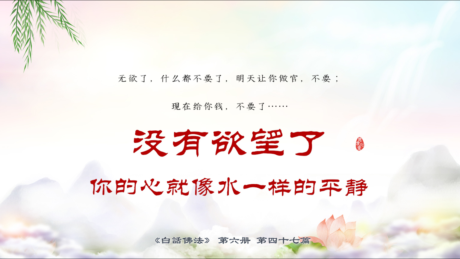 不限会员 6-47-22无欲了,什么都不要了,明天让你做官,不要;现在给你钱,不要了……没有欲望了,你的心就像水一样的平静。【图】