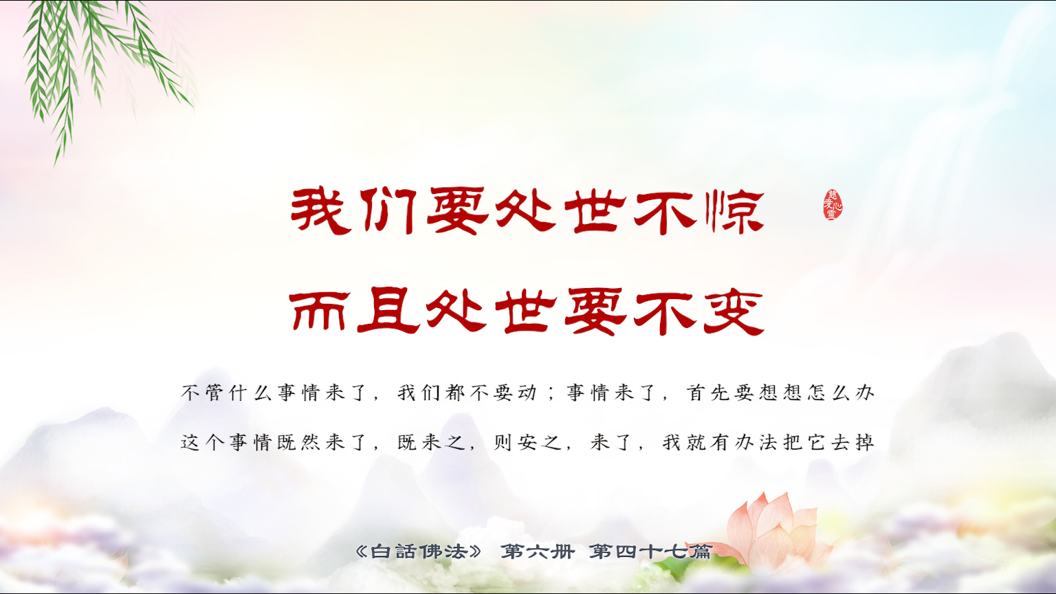 不限会员 6-47-23我们要处世不惊,而且处世要不变。不管什么事情来了,我们都不要动;事情来了,首先要想想怎么办,这个事情既然来了,既来之,则安之,来了,我就有办法把它去掉。【图】