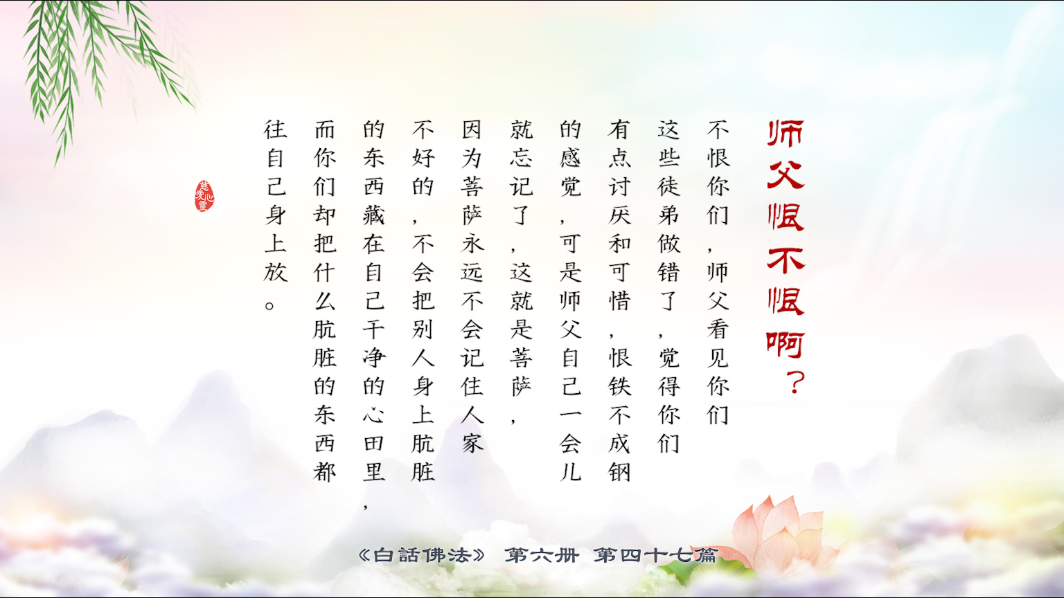 不限会员 6-47-27师父恨不恨啊?不恨你们,师父看见你们这些徒弟做错了,觉得你们有点讨厌和可惜,恨铁不成钢的感觉,可是师父自己一会儿就忘记了,这就是菩萨,因为菩萨永远不会【图】
