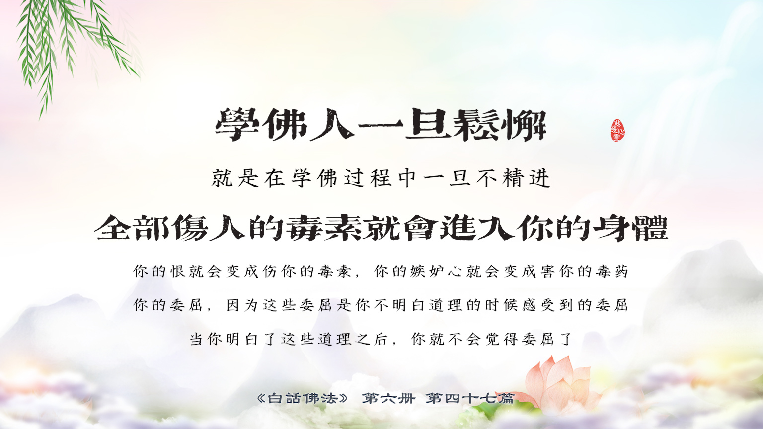 不限会员 6-47-28学佛人一旦松懈,就是在学佛过程中一旦不精进,全部伤人的毒素就会进入你的身体,你的恨就会变成伤你的毒素,你的嫉妒心就会变成害你的毒药,你的委屈【图】