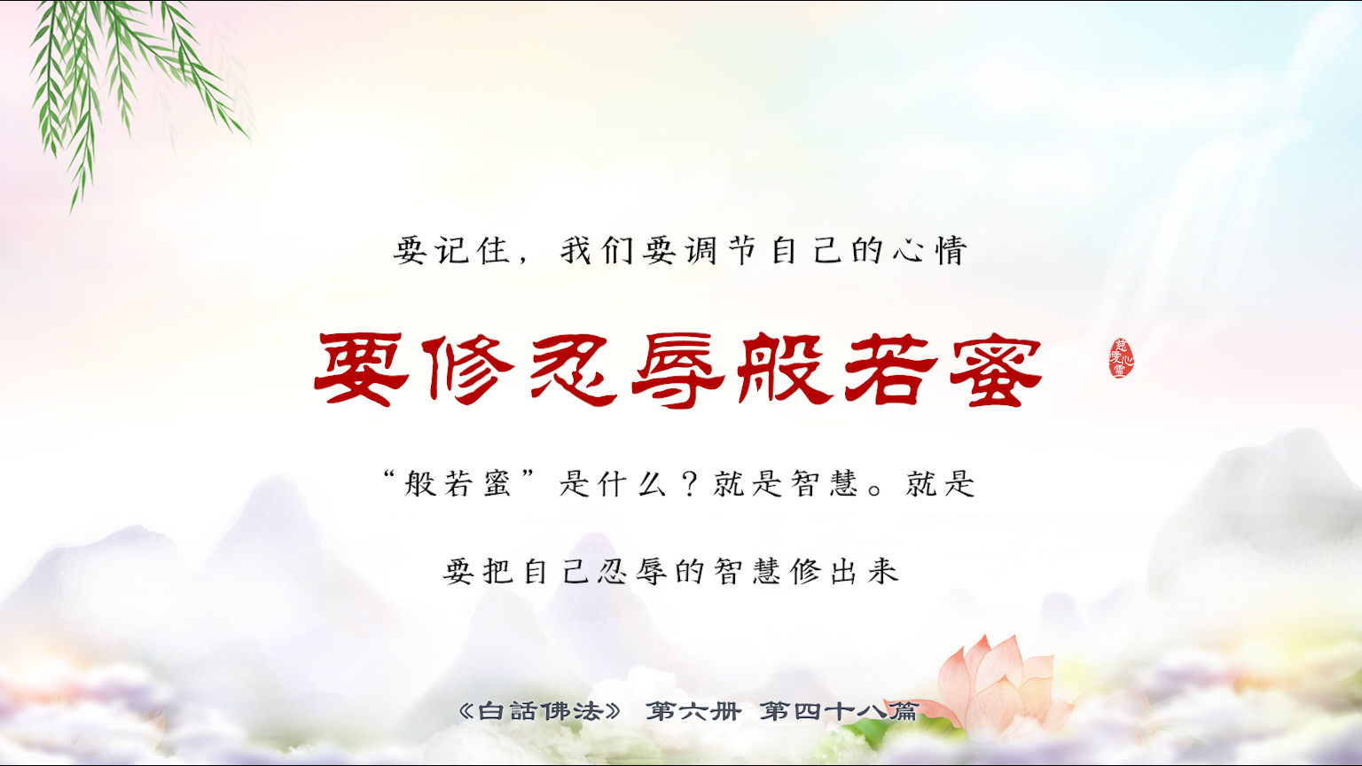 不限会员 6-48-2要记住,我们要调节自己的心情,要修忍辱般若蜜。“般若蜜”是什么?就是智慧。就是要把自己忍辱的智慧修出来。【图】