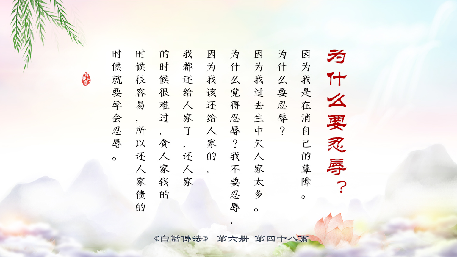 不限会员 6-48-3我为什么要忍辱?因为我是在消自己的孽障。为什么要忍辱?因为我过去生中欠人家太多。为什么觉得忍辱?我不要忍辱,因为我该还给人家的,我都还给人家了,【图】