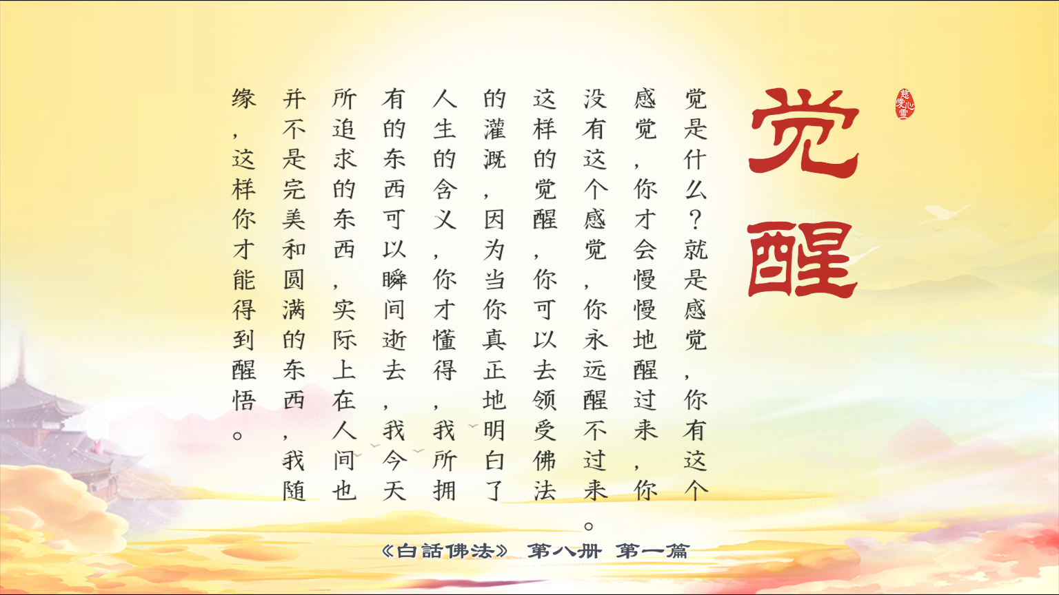 不限会员 8-01-23觉是什么?就是感觉,你有这个感觉,你才会慢慢地醒过来,你没有这个感觉,你永远醒不过来。这样的觉醒,你可以去领受佛法的灌溉,因为当你真正地明白了人生的含义【图】