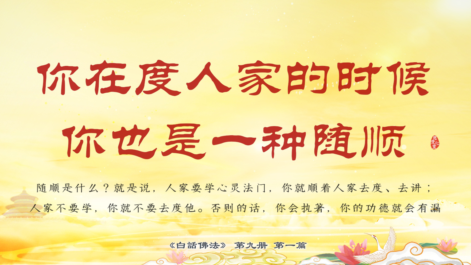 不限会员 9-1-6你在度人家的时候,你也是一种随顺。随顺是什么?就是说,人家要学心灵法门,你就顺着人家去度、去讲;人家不要学,你就不要去度他。否则的话,你会执著,你的功德就会有漏【图】