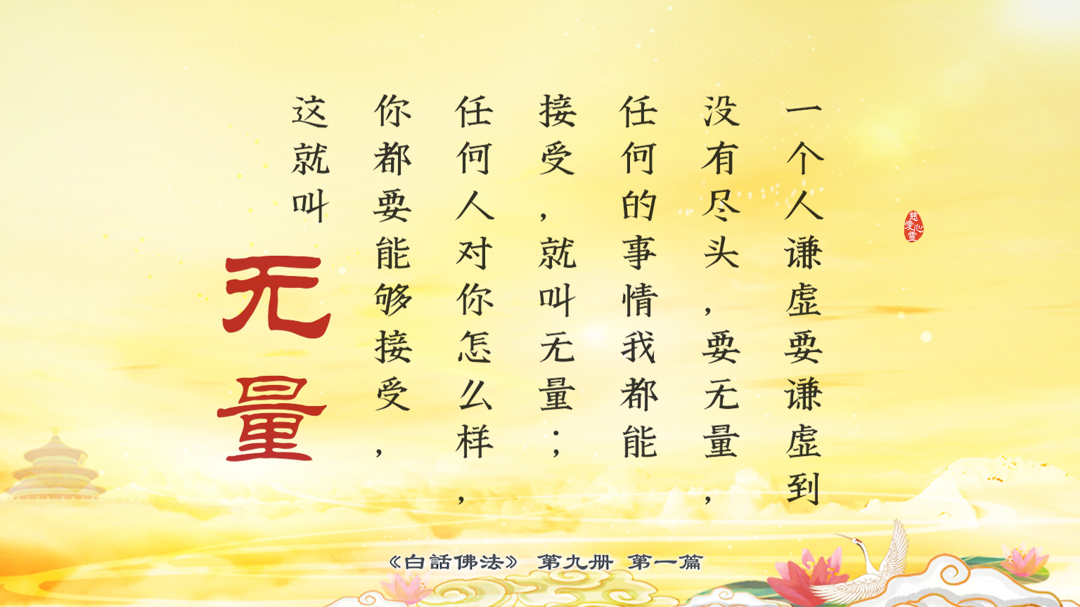 不限会员 9-1-17一个人谦虚要谦虚到没有尽头,要无量,任何的事情我都能接受,就叫无量;任何人对你怎么样,你都要能够接受,这就叫“无量”【图】