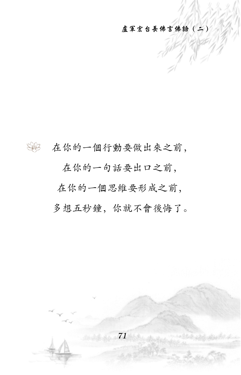 不限会员 在你的一个行动要做出来之前,在你的一句话要出口之前, 在你的一个思维要形成之前, 多想五秒钟,你就不会后悔了 |佛言佛语第二册