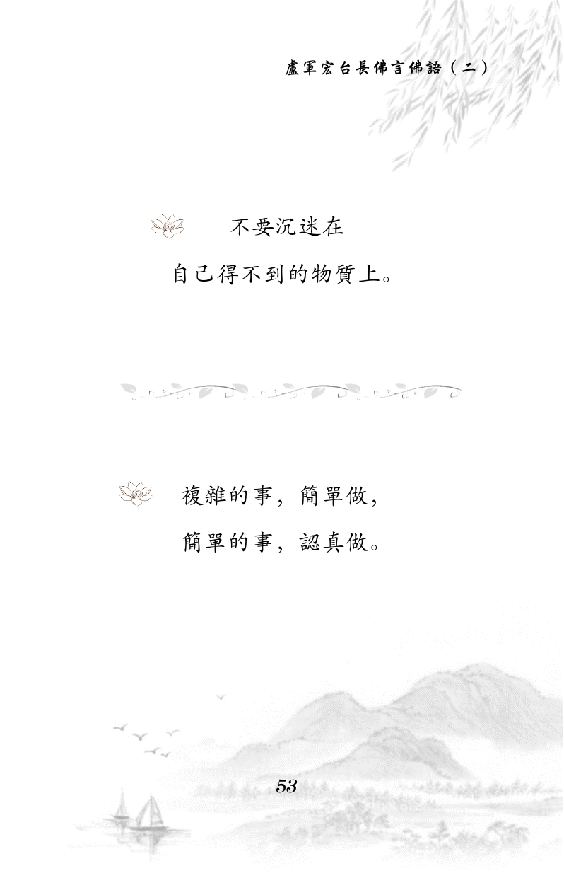 不限会员 不要沉迷在自己得不到的物质上。 复杂的事,简单做, 简单的事,认真做。 |佛言佛语第二册