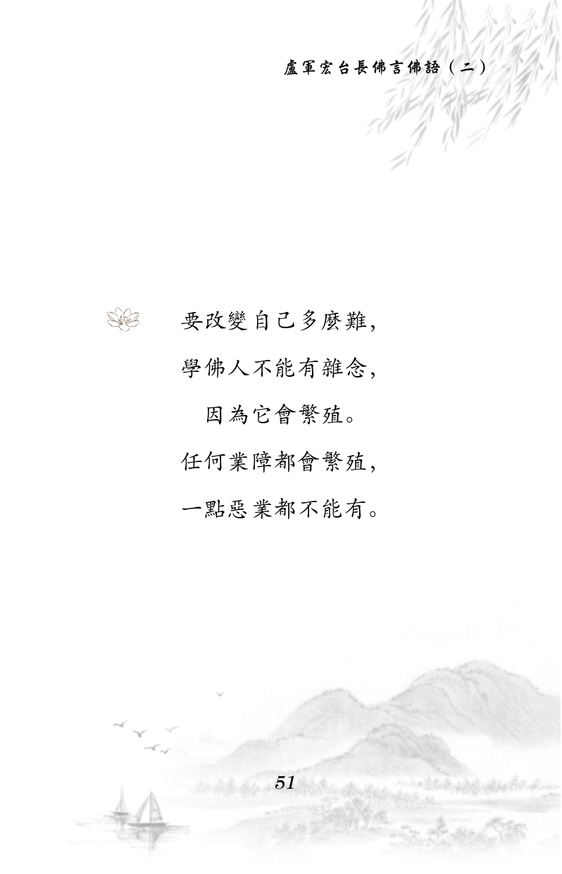 不限会员 要改变自己多么难, 学佛人不能有杂念,因为它会繁殖。 任何业障都会繁殖, 一点恶业都不能有。 |佛言佛语第二册