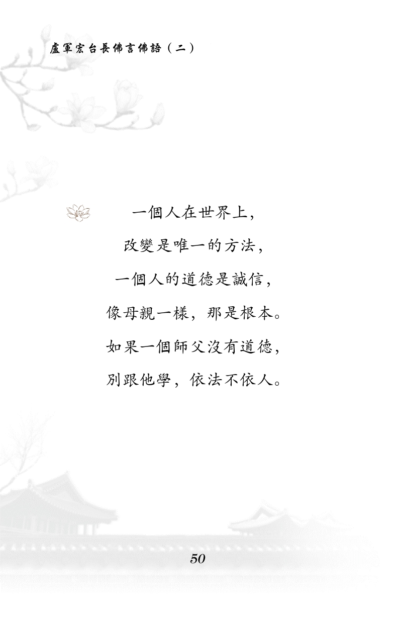 不限会员 一个人在世界上, 改变是唯一的方法, 一个人的道德是诚信, 像母亲一样,那是根本。 如果一个师父没有道德, 别跟他学,依法不依人。 |佛言佛语第二册