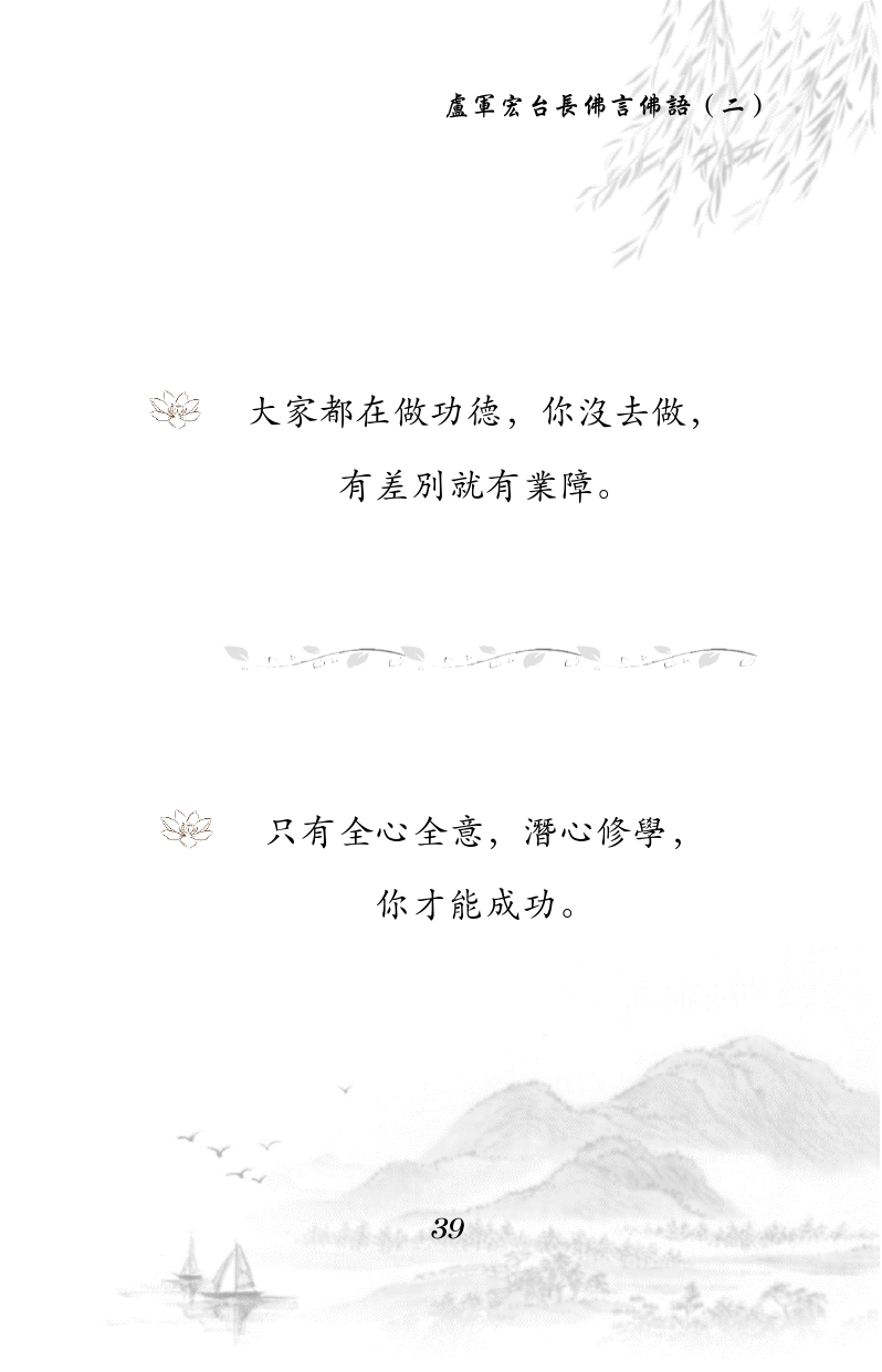 不限会员 大家都在做功德, 你没去做,有差别就有业障。 只有全心全意,潜心修学, 你才能成功。 |佛言佛语第二册