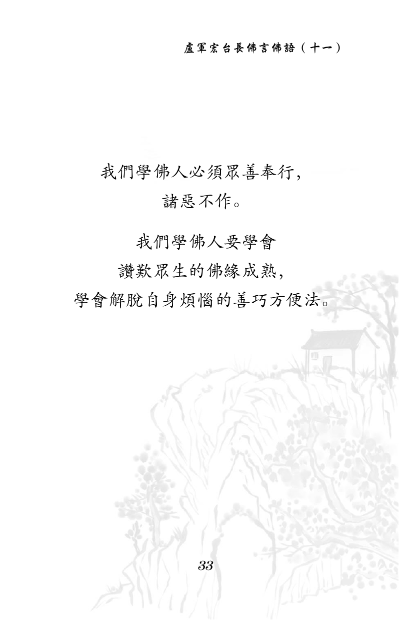 不限会员 能够解脱,靠的是智慧; 能够放下,靠的是般若。 只有用佛菩萨的妙观察智, 才能解决人间的一切烦恼。 经常心里想: 我是学佛人,要对得起菩萨; 我是学佛人,我要学会感恩; 我是学佛人,必须超脱六道。 常作此想,定当远离颠倒梦想。 |佛言佛语(十)