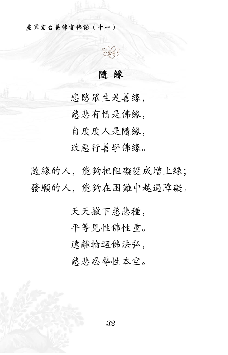 不限会员 学佛心态 在人间不想过后悔的日子, 就要让自己知因懂果。 种什么种子,结什么果; 栽什么树苗,开什么花。 学佛人,种因得果,那是天律; 懂因缘,知轮回,那是禅悟。 不想后悔,不去造业。 过度的需求,就是欲望的开始; 过度的欲望,就是烦恼的开始; 过度的烦恼,就是瞋恨的开始; 过度的瞋恨,就是业障的开始。 |佛言佛语(十)