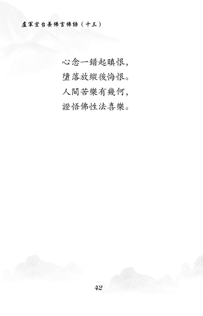 不限会员 心念一錯起瞋恨, 墮落放縱後悔恨。 人間苦樂有幾何, 證悟佛性法喜樂。 |佛言佛语(十三)