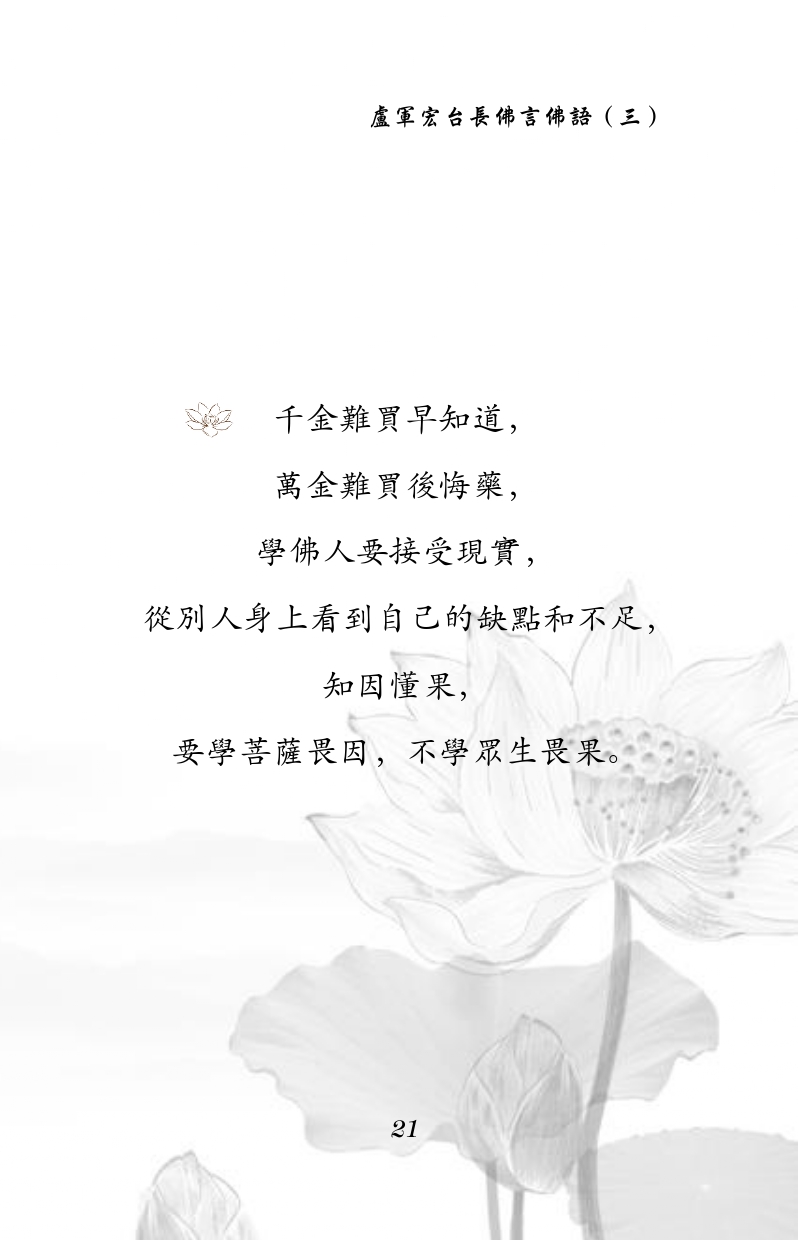 不限会员 千金难买早知道, 万金难买后悔药, 学佛人要接受现实, 从别人身上看到自己的缺点和不足, 知因懂果, 要学菩萨畏因,不学众生畏果。|佛言佛语 第三册