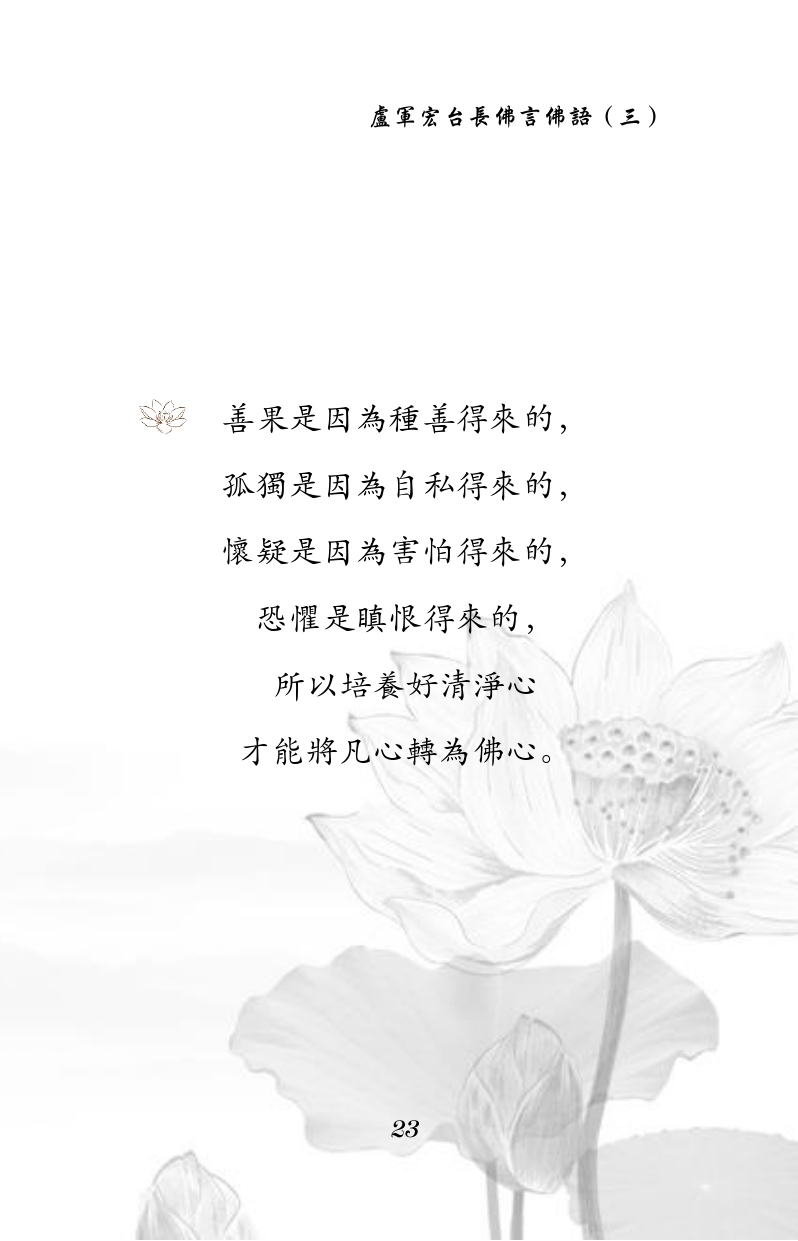 不限会员 善果是因为种善得来的, 孤独是因为自私得来的, 怀疑是因为害怕得来的, 恐惧是瞋恨得来的, 所以培养好清净心 才能将凡心转为佛心。|佛言佛语 第三册