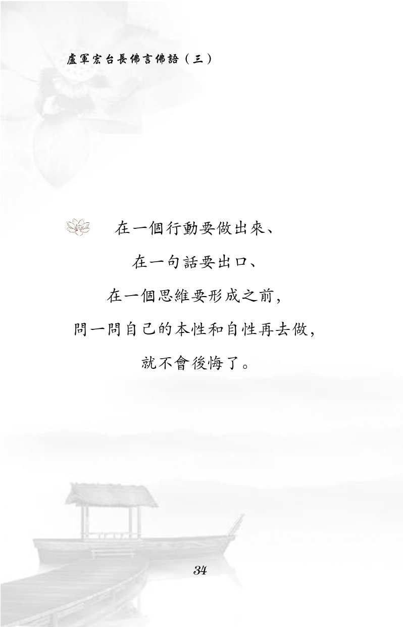 不限会员 在一个行动要做出来、在一句话要出口、 在一个思维要形成之前, 问一问自己的本性和自性再去做, 就不会后悔了。|佛言佛语 第三册
