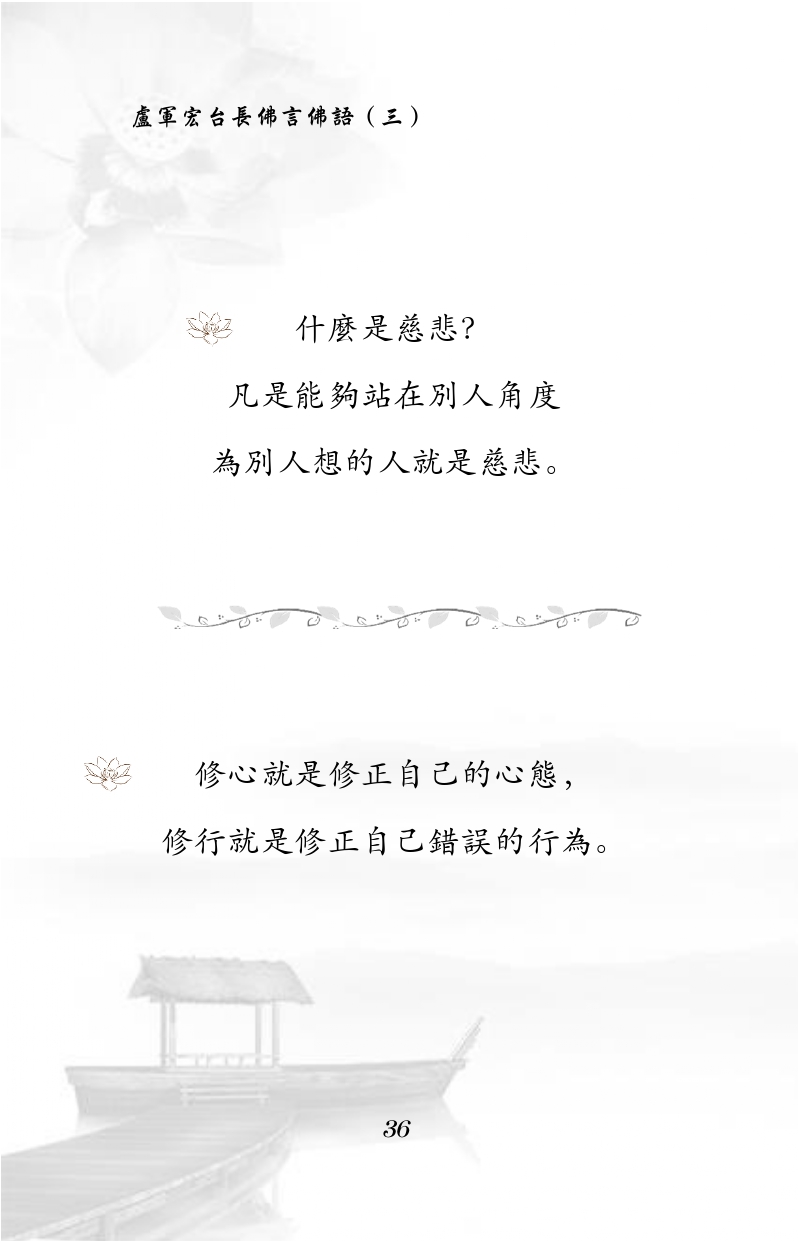 不限会员 什么是慈悲? 凡是能够站在别人角度 为别人想的人就是慈悲。 修心就是修正自己的心态, 修行就是修正自己错误的行为。|佛言佛语 第三册