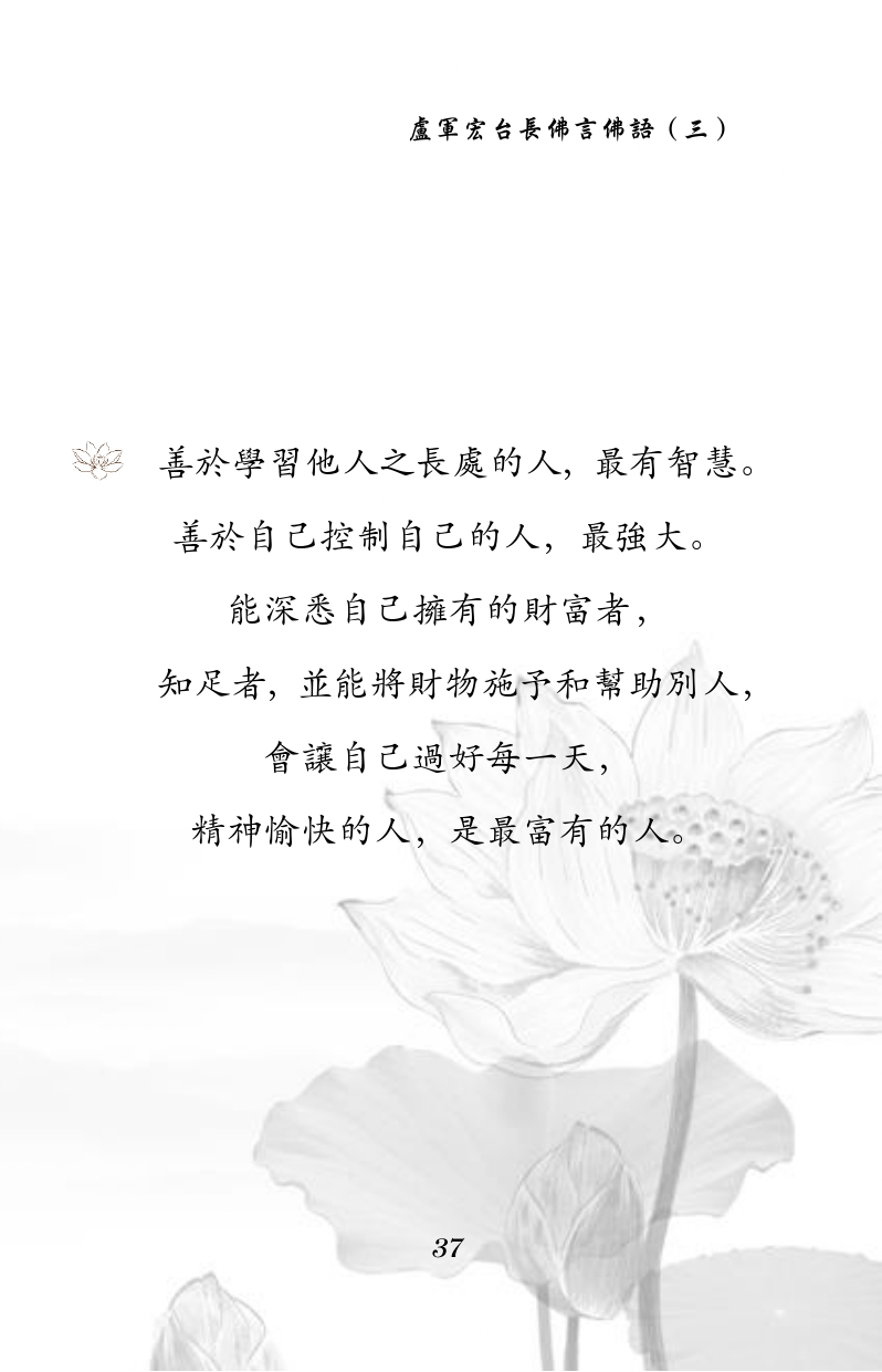 不限会员 善于学习他人之长处的人,最有智慧。善于自己控制自己的人,最强大。 能深悉自己拥有的财富者,知足者, 并能将财物施予和帮助别人, 会让自己过好每一天, 精神愉快的人,是最富有的人。|佛言佛语 第三册