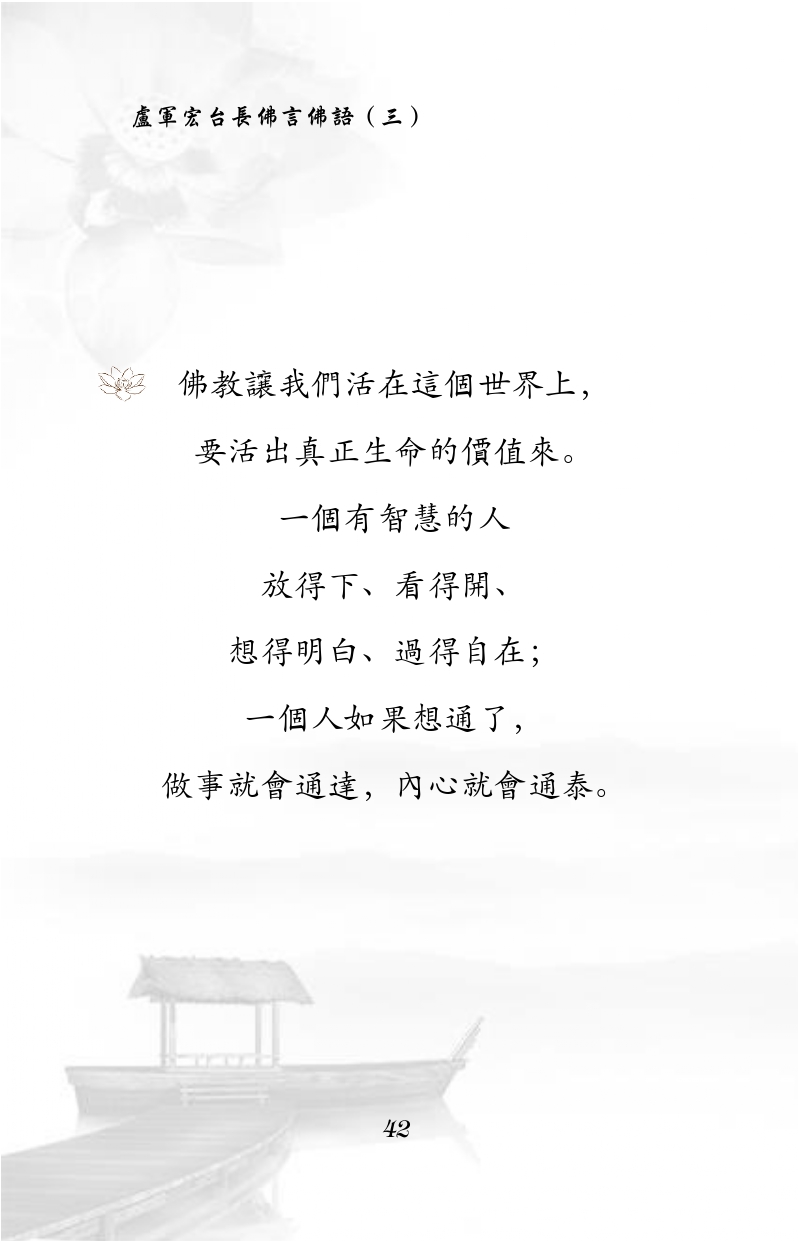 不限会员 佛教让我们活在这个世界上, 要活出真正生命的价值来。 一个有智慧的人,放得下、看得开、 想得明白、过得自在; 一个人如果想通了,做事就会通达,内心就会通泰。|佛言佛语 第三册