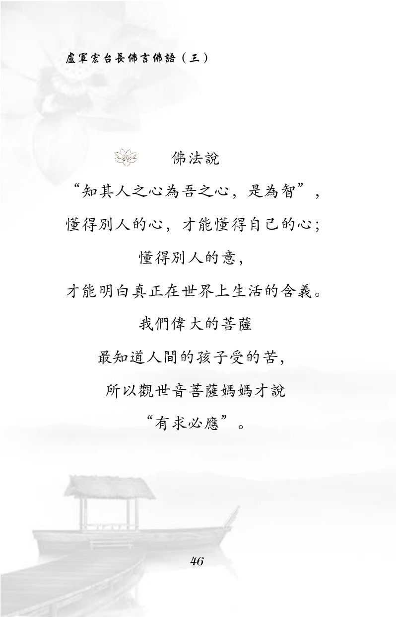 不限会员 佛法说 “知其人之心为吾之心,是为智”, 懂得别人的心,才能懂得自己的心; 懂得别人的意,才能明白真正在世界上生活的含义。 我们伟大的菩萨 最知道人间的孩子受的苦, 所以观世音菩萨妈妈才说 “有求必应”。|佛言佛语 第三册