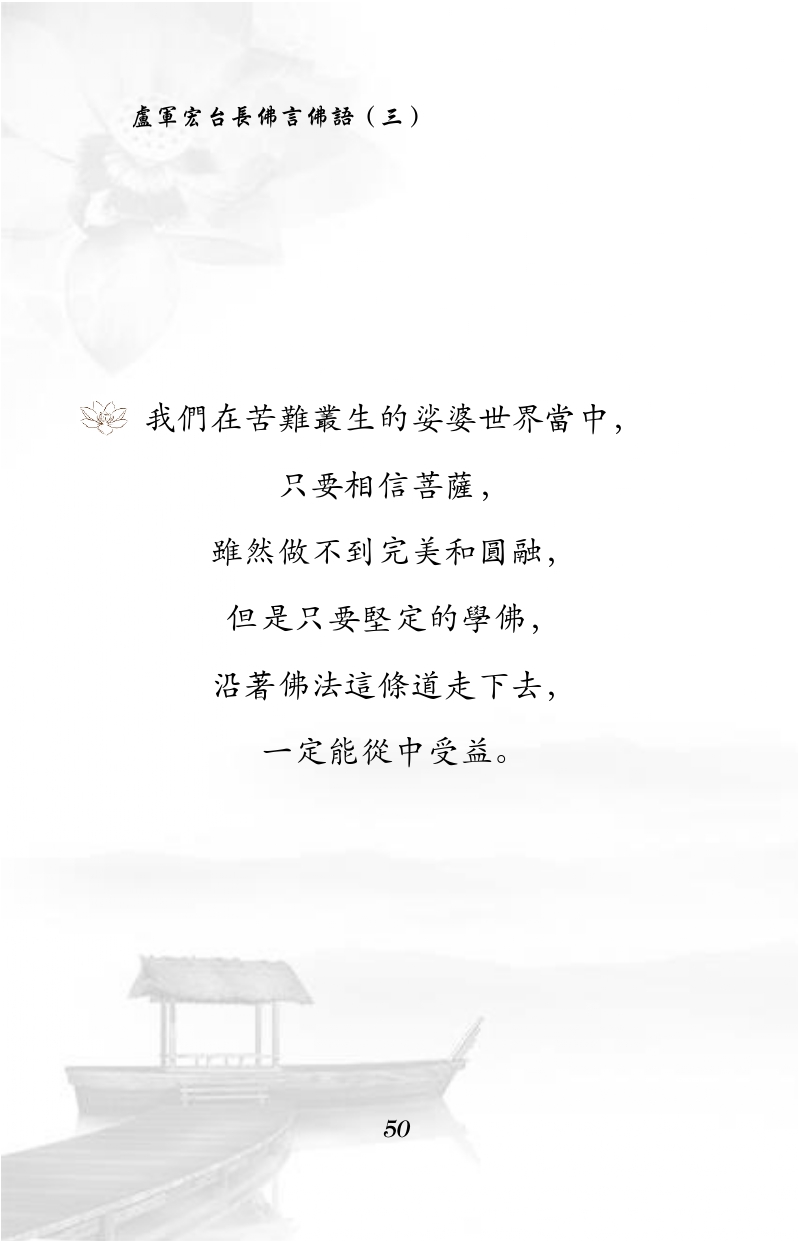 不限会员 我们在苦难丛生的娑婆世界当中, 只要相信菩萨, 虽然做不到完美和圆融, 但是只要坚定的学佛, 沿着佛法这条道走下去, 一定能从中受益。|佛言佛语 第三册