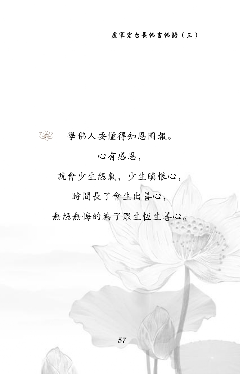 不限会员 学佛人要懂得知恩图报。心有感恩, 就会少生怨气,少生瞋恨心, 时间长了会生出善心, 无怨无悔的为了众生恒生善心。|佛言佛语 第三册