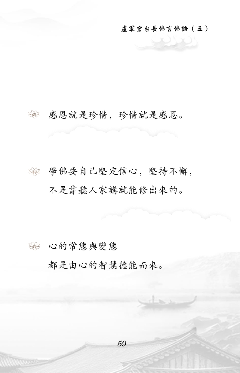 不限会员 感恩就是珍惜,珍惜就是感恩。 学佛要自己坚定信心,坚持不懈, 不是靠听人家讲就能修出来的。 心的常态与变态 都是由心的智慧德能而来。 |佛言佛语 第五册