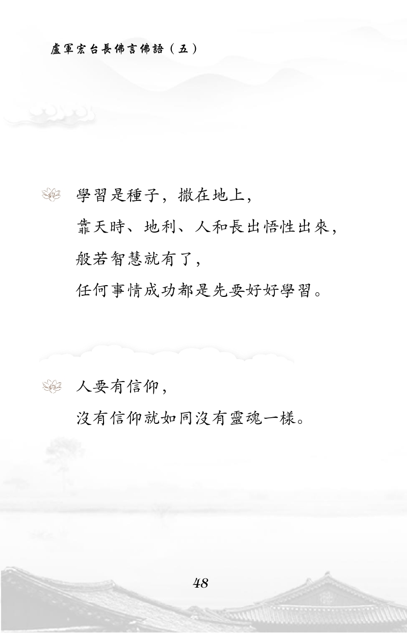 不限会员 学习是种子,撒在地上, 靠天时、地利、人和长出悟性出来, 般若智慧就有了, 任何事情成功都是先要好好学习。 人要有信仰, 没有信仰就如同没有灵魂一样。 |佛言佛语 第五册