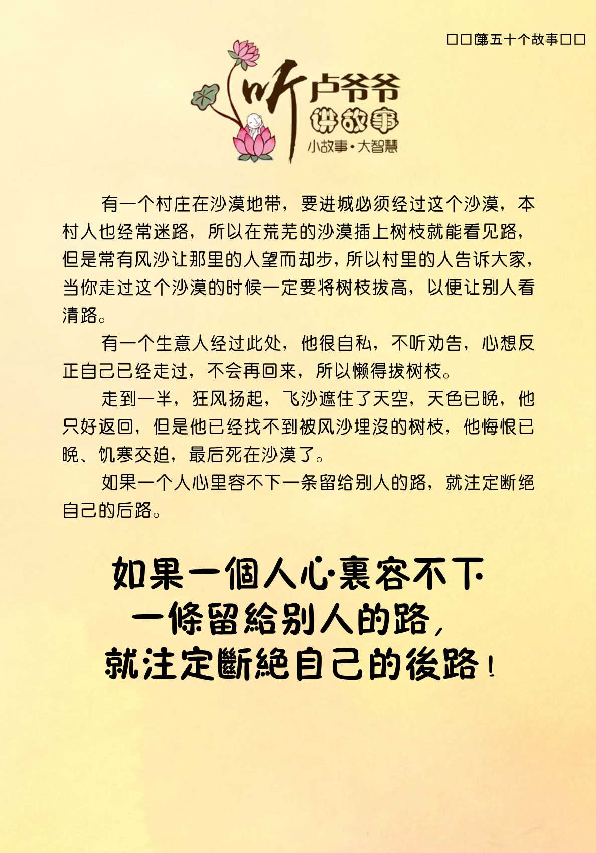 不限会员 050、如果一个人心里容不下一条留给别人的路,就注定断绝自己的后路!