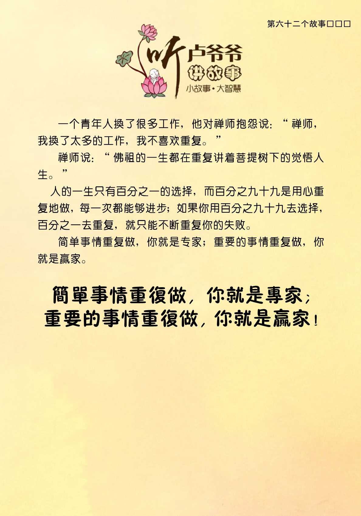 不限会员 062、简单事情重复做,你就是专家;重要的事情重复做,你就是赢家。
