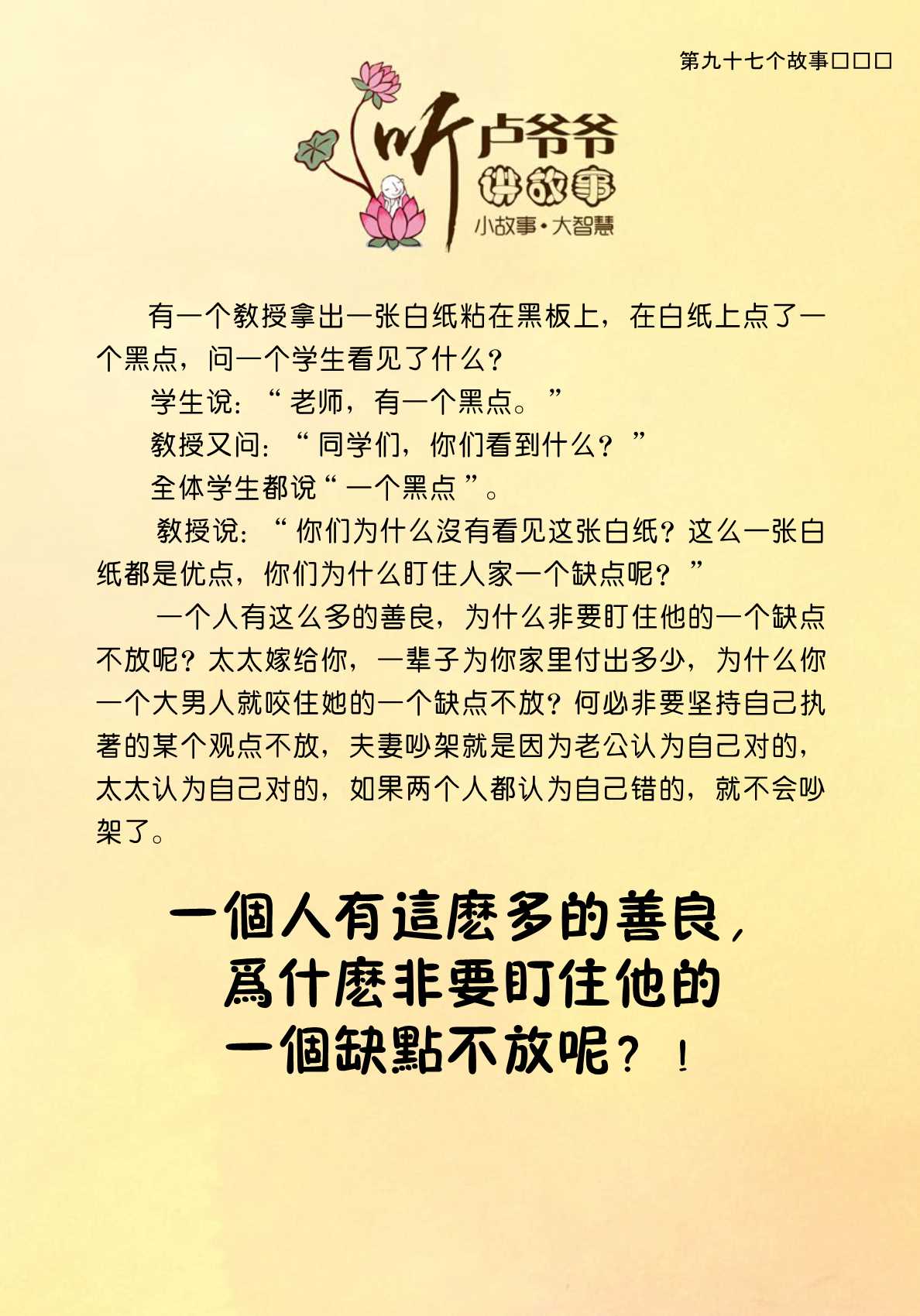 不限会员 097、一个人有这么多的善良,为什么非要盯住他的一个缺点不放呢?!