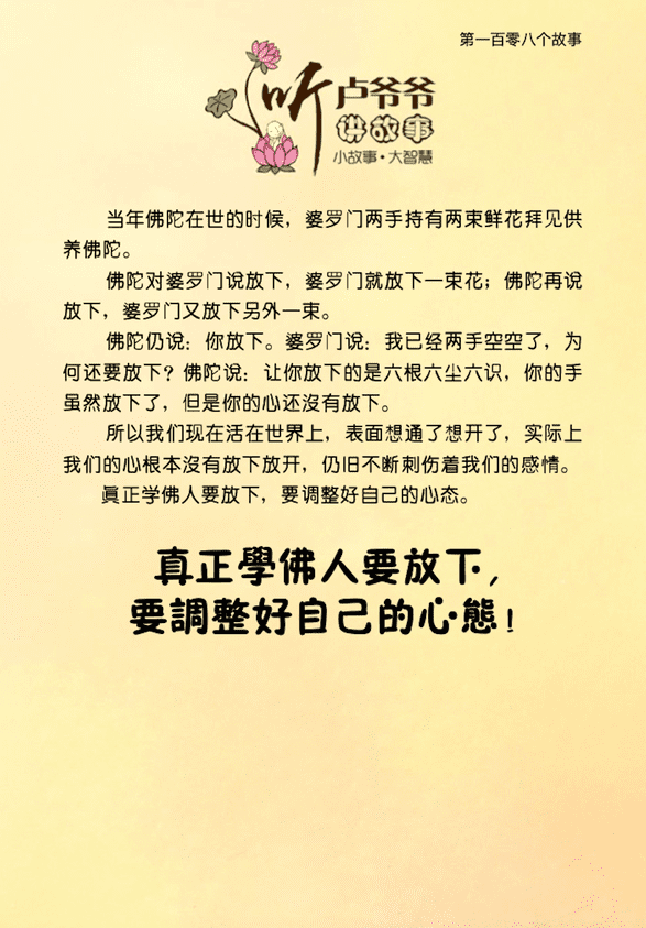 不限会员 108、真正学佛人要放下,要调整好自己的心态。