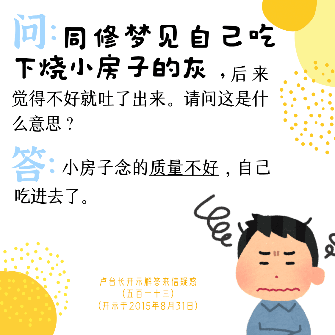 不限会员 同修梦见自己吃下烧小F子的灰,后来觉得不好就吐了出来。【来信疑惑(五百一十三)】