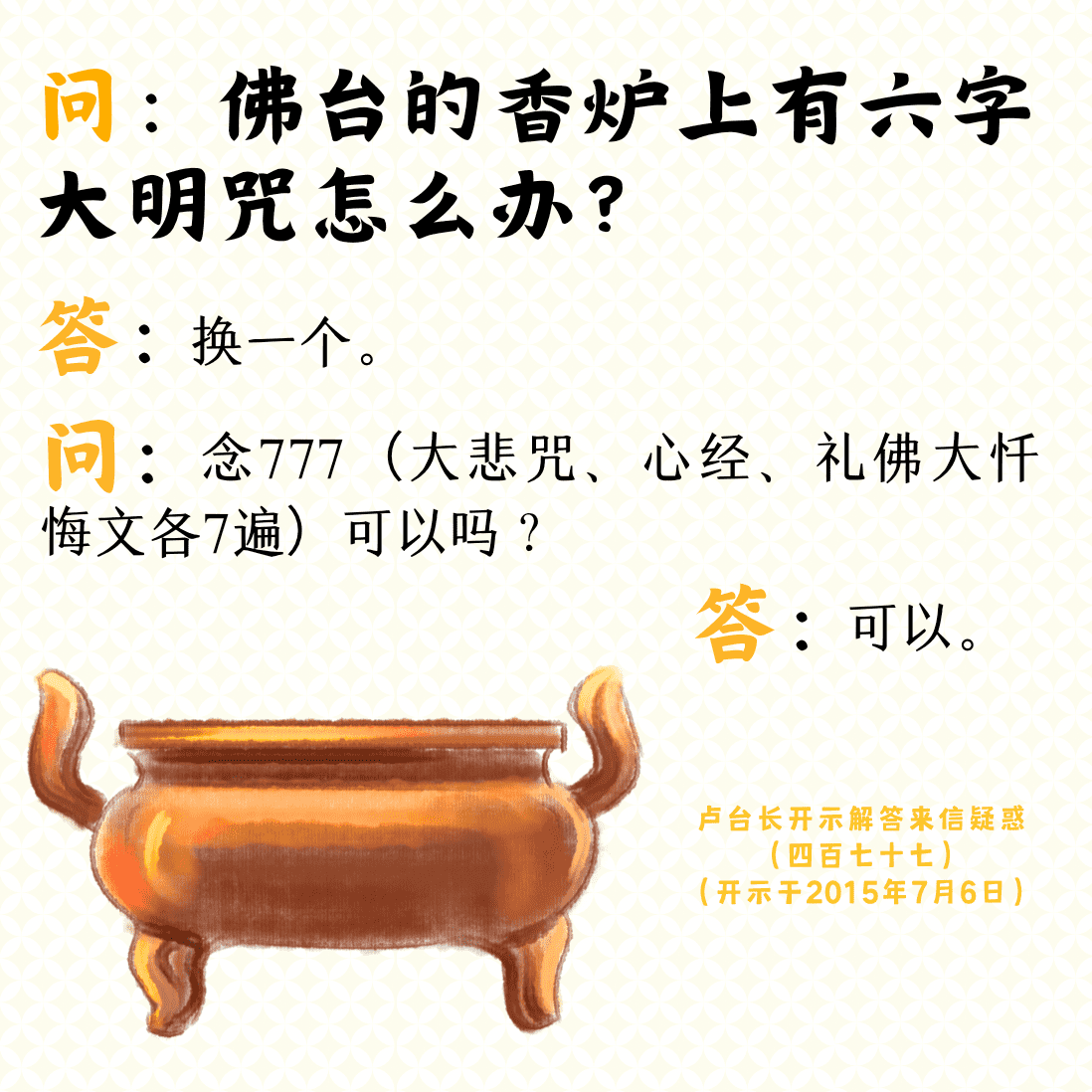 不限会员 问:佛台的香炉上有六字大明咒怎么办?【来信疑惑(四百七十七)】