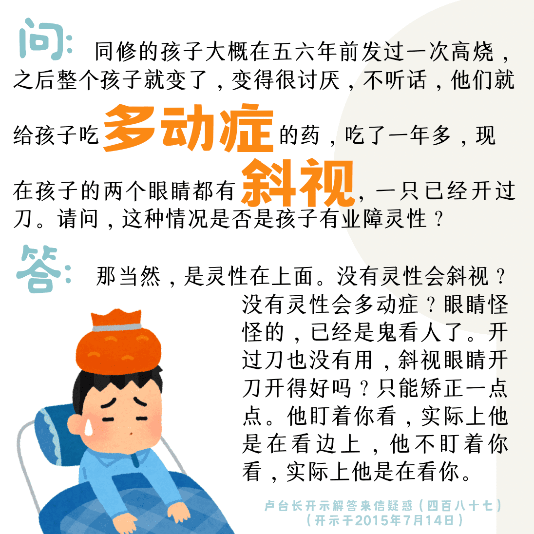 不限会员 问:同修的孩子大概在五六年前发过一次高烧,之后整个孩子就变了,变得很讨厌,不听话……【来信疑惑(四百八十七)】