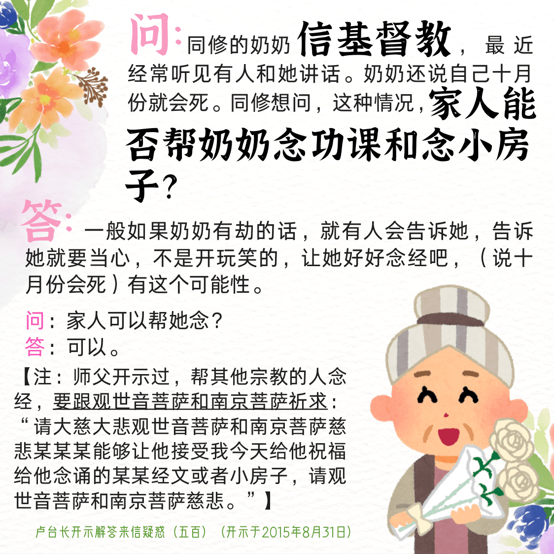 不限会员 问:同修的奶奶信基督教【来信疑惑(五百)】