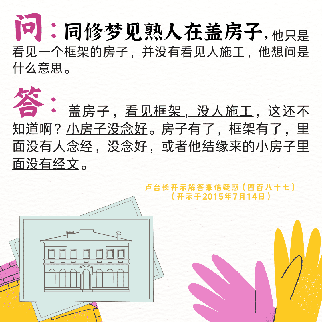 不限会员 问:同修梦见熟人在盖房子,他只是看见一个框架的房子【来信疑惑(四百八十七)】