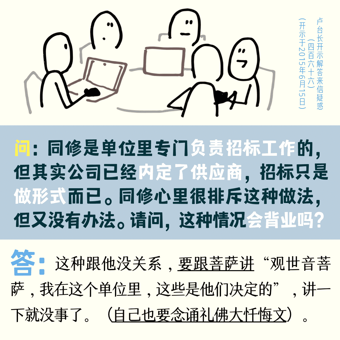 不限会员 问:同修是单位里专门负责招标工作的,但其实公司已经内定了供应商,招标只是做形式而已。【来信疑惑(四百六十六)】