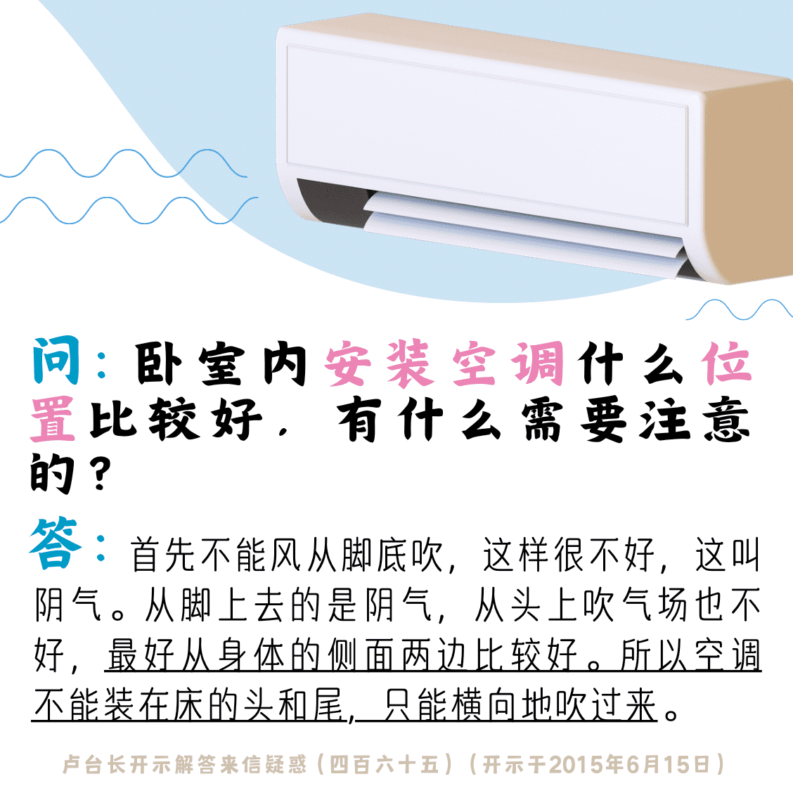 不限会员 问:卧室内安装空调什么位置比较好,有什么需要注意的?【来信疑惑(四百六十五)】