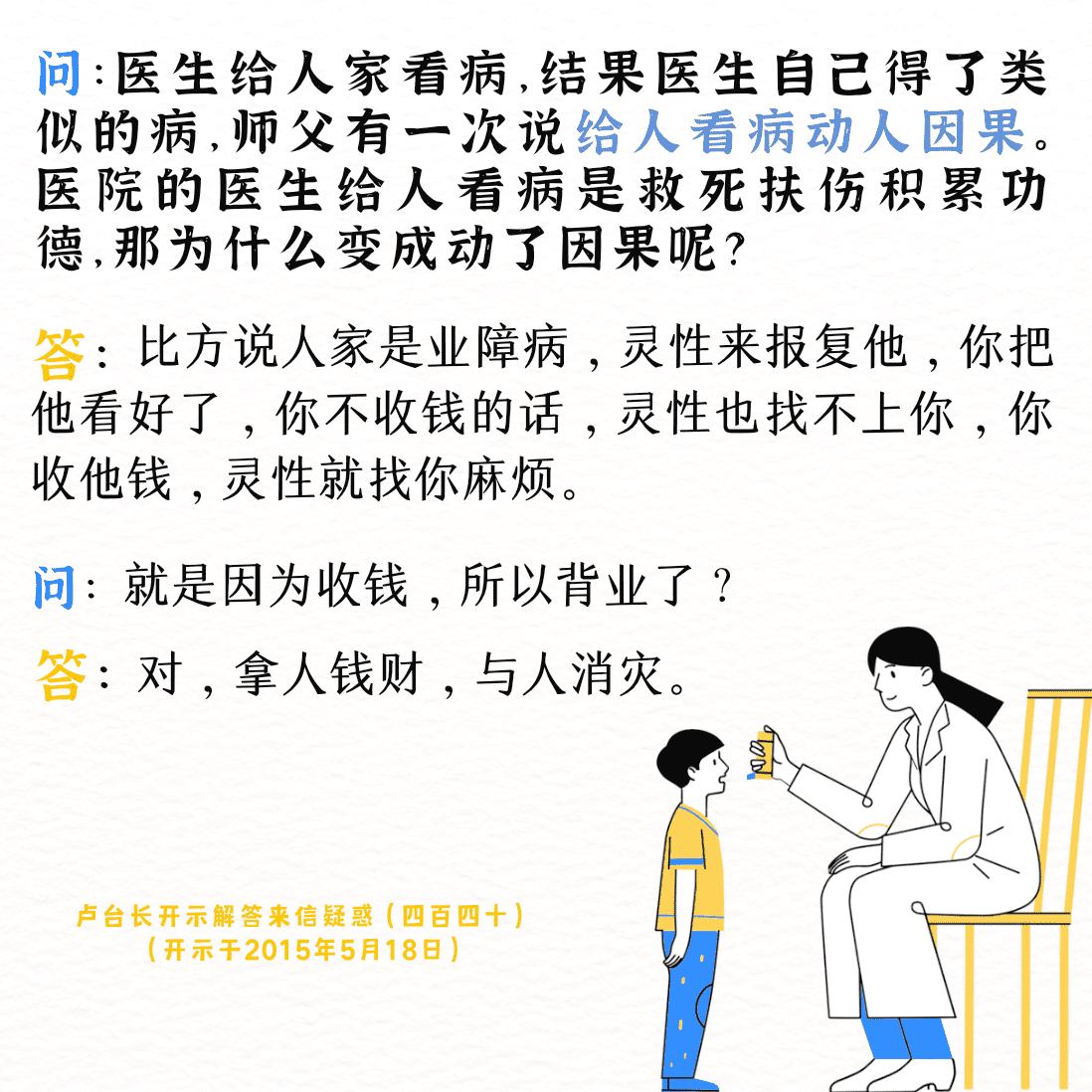 不限会员 问:医生给人家看病,结果医生自己得了类似的病,师父有一次说给人看病动人因果。【来信疑惑(四百四十)(开示于2015年5月18日)】