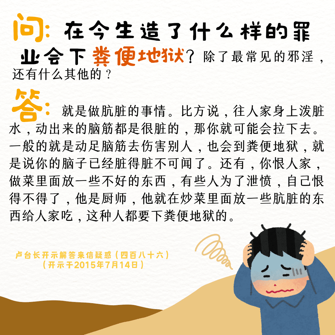 不限会员 问:在今生造了什么样的罪业会下粪便地狱?除了最常见的邪淫,还有什么其他的?【来信疑惑(四百八十六)】